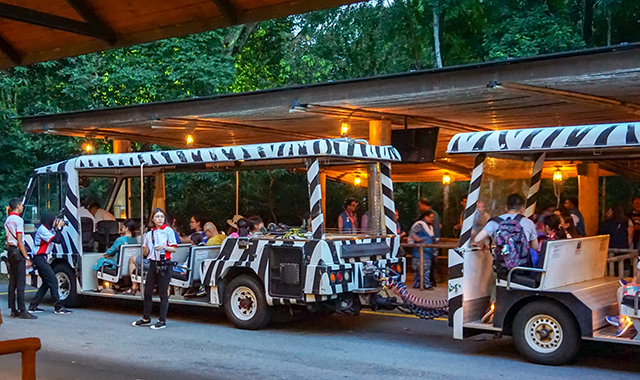 나이트 사파리의 트램은 완전 개방된 형태의 트램이에요. 대기 줄이 이미 트램부터 상당하다고 알려져 있어요.