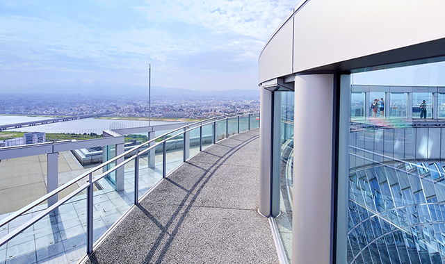 오사카에는 여러 전망대가 있는데 그 중 공중정원 전망대가 항상 인기를 끌고 있는 이유는 바로 360도로 걸으면서 오사카 도심의 뷰를 모두 볼 수 있게 되어 있기 때문이에요. 특히 유리창을 통해서 보는 것이 아닌 바람을 맞으며 탁 트인 시야로 만날 수 있다는 점이 우메다 공중정원 전망대의 최고 매력이에요.