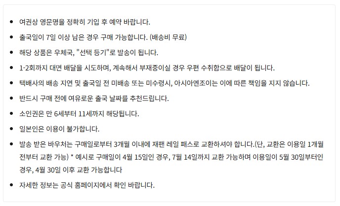 구매 후 받으신 교환권을 일본현지 “재팬 레일패스 지정교환소”에서 여권과 함께 제시, 실제 패스로 교환 후 이용하시면 됩니다.