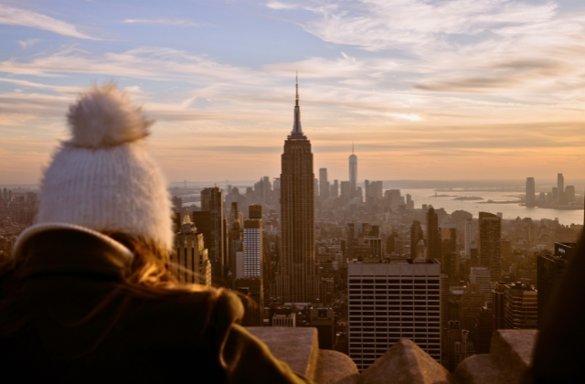 뉴욕에는 여러 전망대가 있지만 그 중 우리가 탑 오브 더 락에 가야하는 이유! 바로 아무런 방해 없이 탁 트인 전망을 루프탑에서 볼 수 있기 때문이에요. 특히 매직 아워로 불리는 선셋 시간에 탑 오브 더 락에서는 석양에 반사된 아름다운 엠파이어 스테이트 빌딩을 만날 수 있어요.