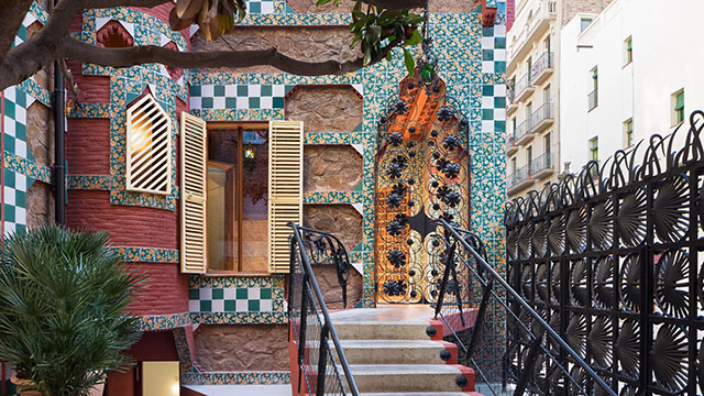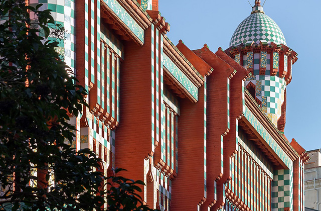 가우디의 첫 번째 작품인 까사 비센스는 모리스크 양식과 동화적인 요소를 결합해 고유하고 아름다운 디자인을 보여주고 있어 꼭 만나야 하는 필수 여행지 중 하나예요. 기하학적이고 감각적인 외관은 멀리서도 눈에 띌 정도로 아름다우며 스페인 카탈루냐 양식의 선구적인 작품으로 평가받고 있어요.