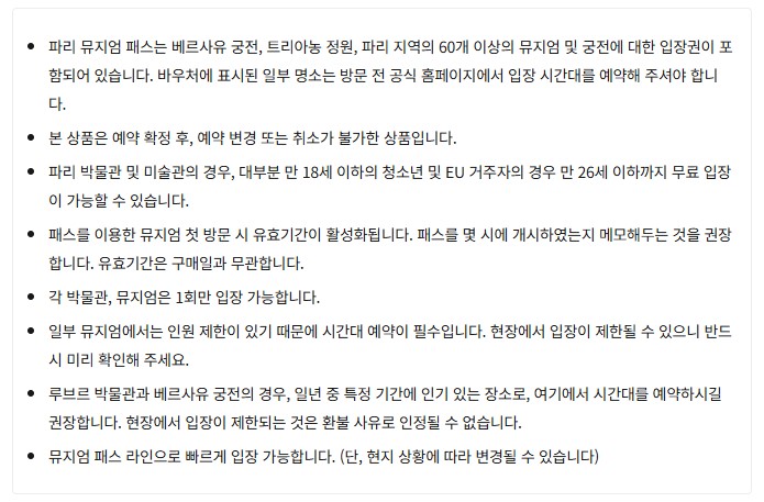 ●2026년 1월 1일부터 파리 박물관 패스는 단체 관람객에게 더 이상 사용할 수 없습니다. 단체 관람객은 박물관에서 정한 입장료를 별도로 지불해야 합니다.