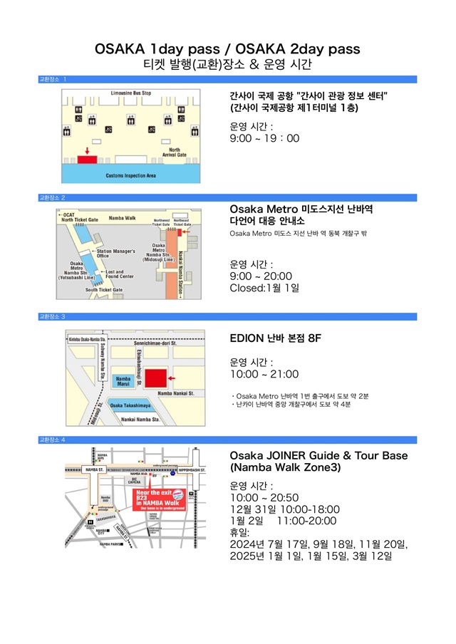 오사카 메트로패스는 오사카 시영 지하철과 뉴트램 그리고 버스를 하루 혹은 2일 동안 무제한으로 이용할 수 있는 패스예요. 그래서 매번 티켓을 구매해야 하는 번거로움 없이 아주 빠르고 편하고 편리하게 오사카의 인기 명소를 방문할 수 있어요. 또한 무제한 교통 뿐만 아니라 우메다 스카이빌딩, 츠텐카쿠 타워, 오사카성 박물관 등 다양한 명소를 할인 받아 입장할 수 있어 정말 유용해요.