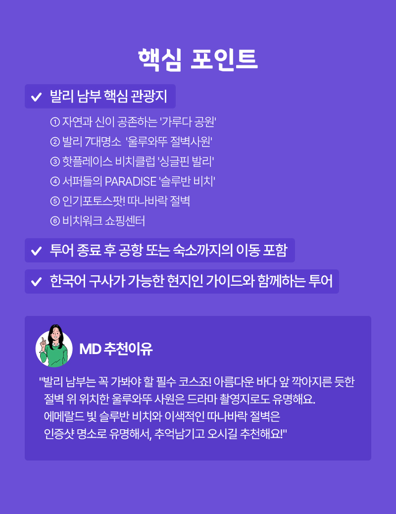 #남부 #가루다공원 #싱글핀 #울루와뚜 절벽사원 #슬루반 비치 #비치워크쇼핑몰 #공항샌딩