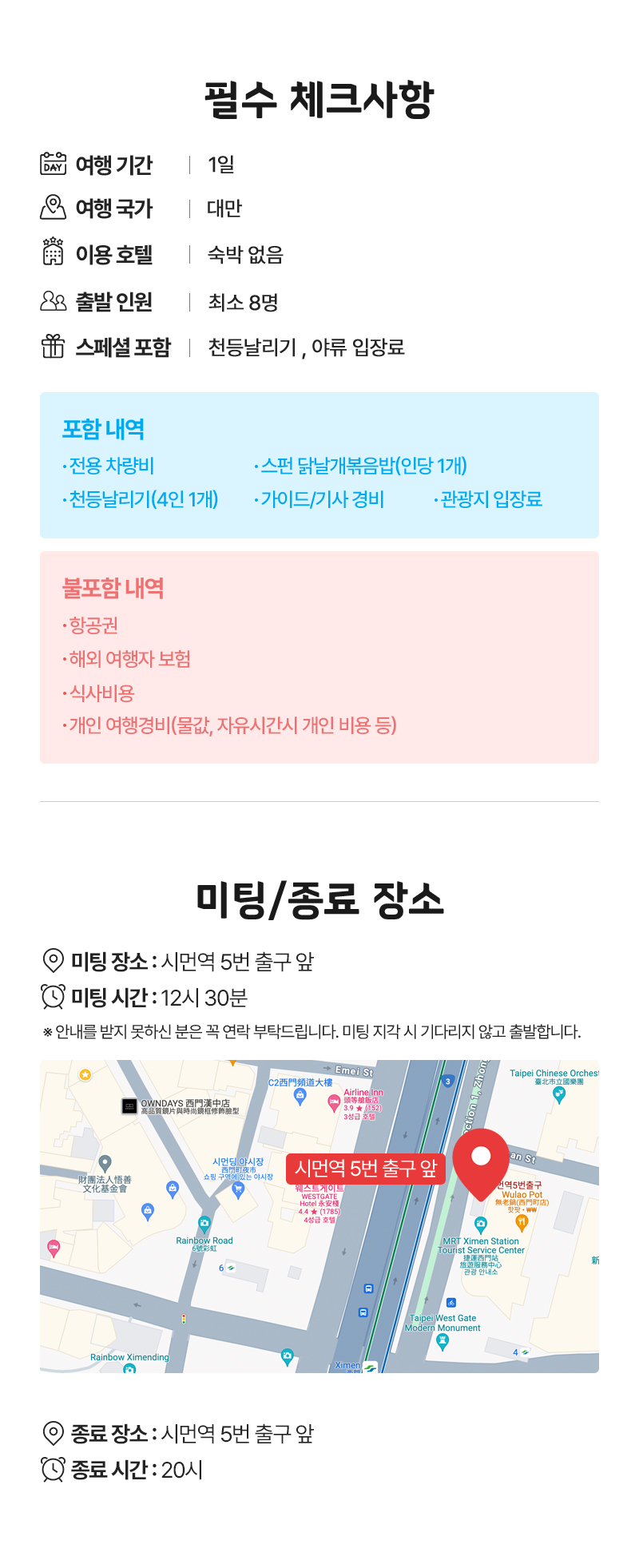 대만 야류/스펀/지우펀 1일투어 오후출발