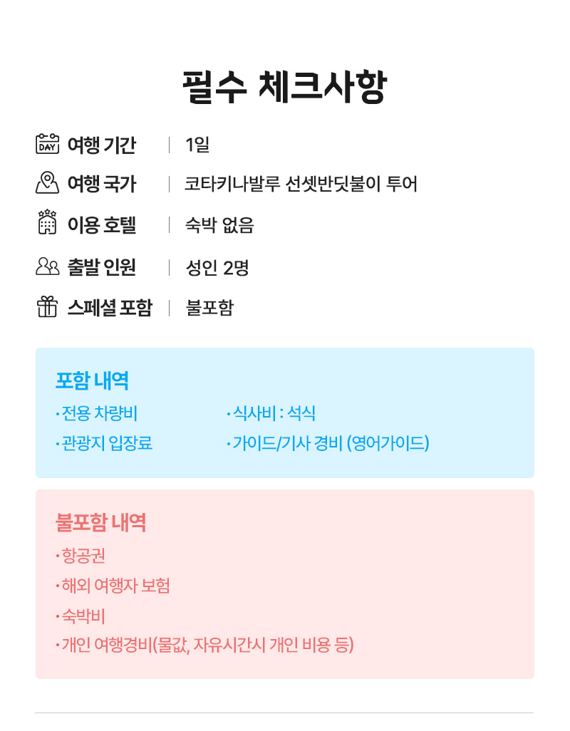 👉예약 확정 바우처를 받기 전까지는 예약 확정이 아닙니다. 현지 상황에 따라 예약 불가 및 환불 처리될 수도 있습니다.