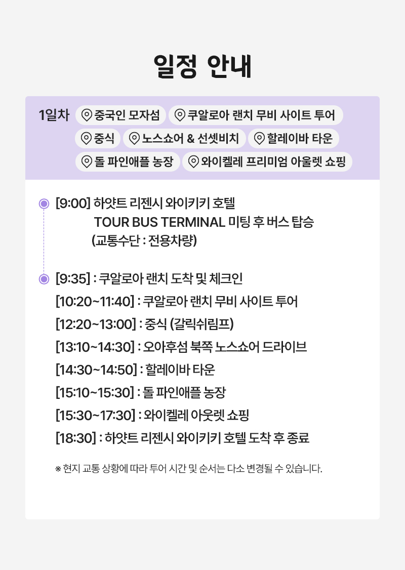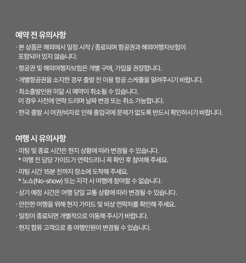 👉예약 확정 바우처를 받기 전까지는 예약 확정이 아닙니다. 현지 상황에 따라 예약 불가 및 환불 처리될 수도 있습니다.