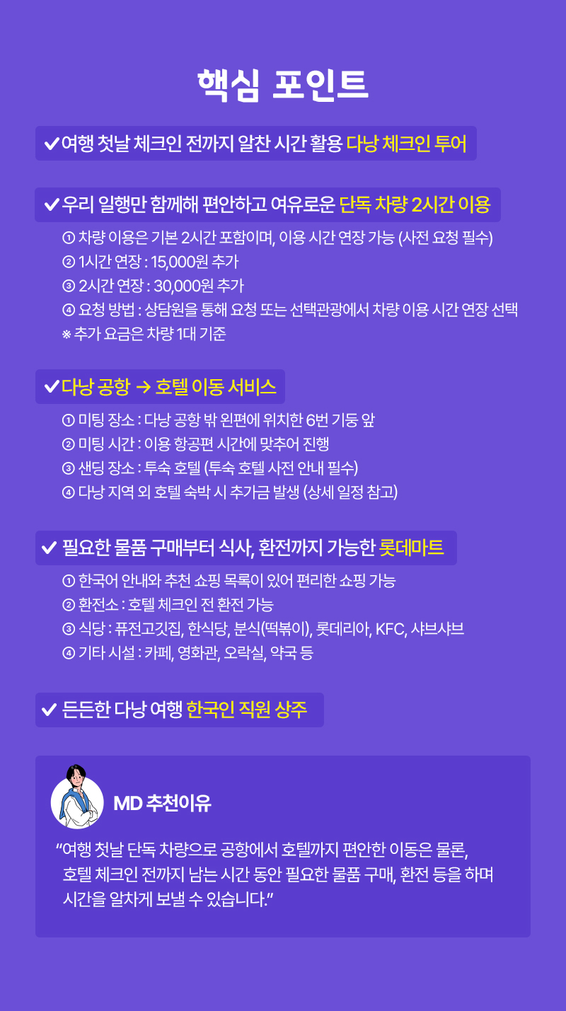 #단독차량 2시간 #공항픽업 #롯데마트 #현지출발 #항공권별도
