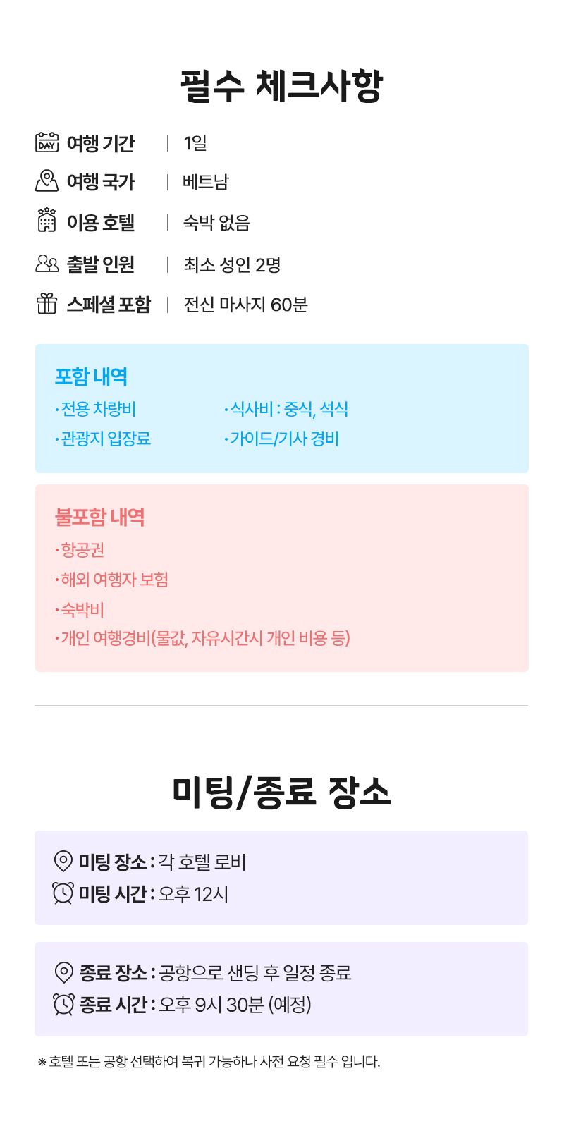 #오전 도착 추천 #조/중식 포함 # 관광지 방문 # 호텔 체크인