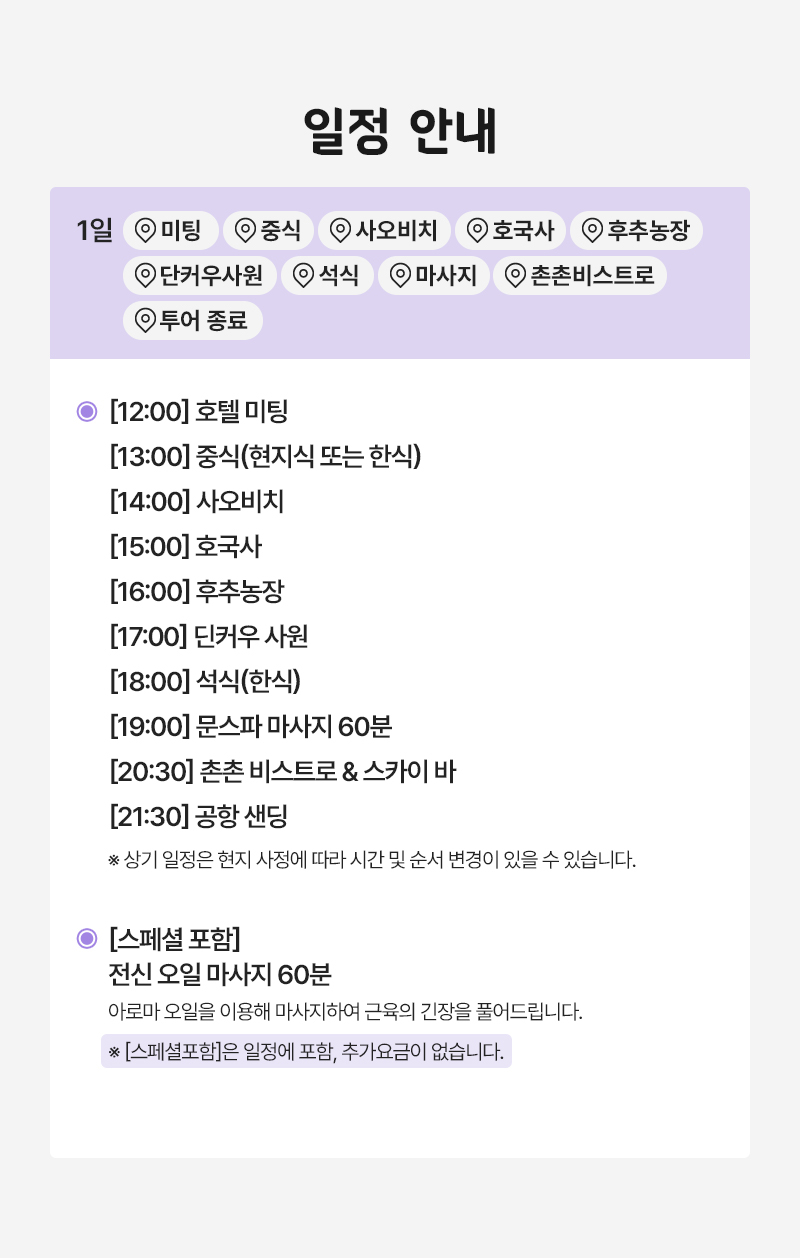 👉예약 확정 바우처를 받기 전까지는 예약 확정이 아닙니다. 현지 상황에 따라 예약 불가 및 환불 처리될 수도 있습니다.
