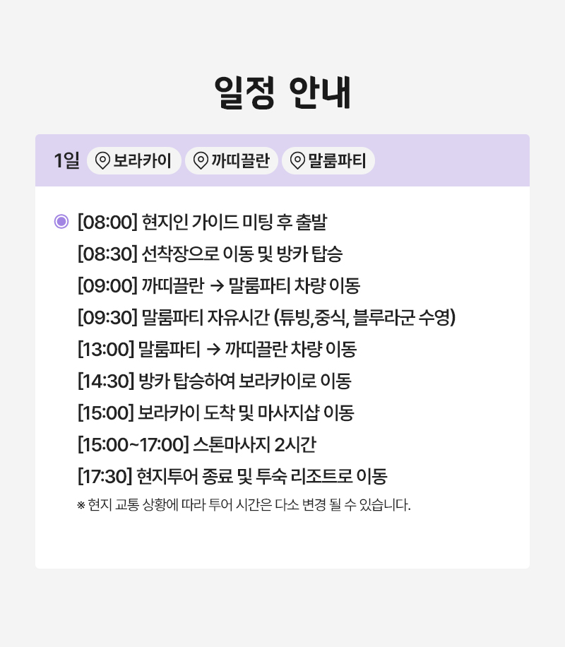 👉예약 확정 바우처를 받기 전까지는 예약 확정이 아닙니다. 현지 상황에 따라 예약 불가 및 환불 처리될 수도 있습니다.
