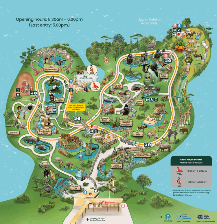 싱가포르 동물원은 정말 엄청난 규모를 자랑하기 때문에 맵을 사전에 확인하고 동선을 정하는 것이 좋아요. 하지만 빠르게 보고 싶은 분들을 위한 정답은 있답니다.