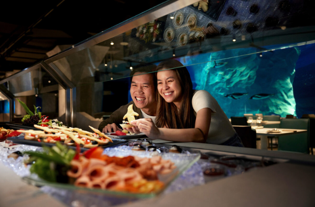 마치 깊은 바닷속에 들어온 듯한 신비로운 공간에서 사랑스러운 펭귄들이 유영하는 모습을 바로 옆에서 감상하며 식사를 즐겨보세요! 대형 수조를 둘러싼 특별한 환경 덕분에 펭귄들이 물속을 활발하게 헤엄치는 모습을 눈높이에서 관찰할 수 있어요. 군침 도는 현지 및 국제 뷔페 메뉴를 맛보는 동시에, 푸른 수조 안에서 장난기 가득한 펭귄들이 펼치는 환상적인 수중 발레를 감상하는 이색적인 경험은 싱가포르 여행의 가장 특별한 하이라이트가 될 거예요!