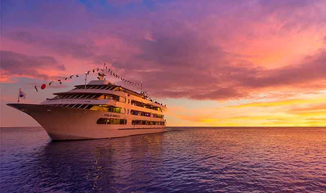 알로하 타워에서 출발하는 크루즈는 세상에서 가장 아름답다는 태평양의 일몰과 오아후의 멋진 해안 야경을 두루 감상하고 돌아오게 돼요. 거대한 크기의 크루즈만큼 품격있는 서비스를 받으실 수 있답니다. 선내에는 다양한 라이브 음악이 연주되며 부드러운 하와이 전통 훌라댄스에서부터 박력 넘치는 폴리네시안 남성의 춤까지 탑승객의 눈과 귀를 즐겁게 해주는 쇼가 진행돼요. 등급에 따라 퍼시픽 스타, 1스타, 3스타, 5스타의 4층으로 구성되어 있어요. 각 등급의 패키지는 쇼의 내용과 제공받는 고품격 서비스는 같지만, 식사메뉴의 구성과 칵테일 등의 음료 제공이 다르게 구성되어 있어요.