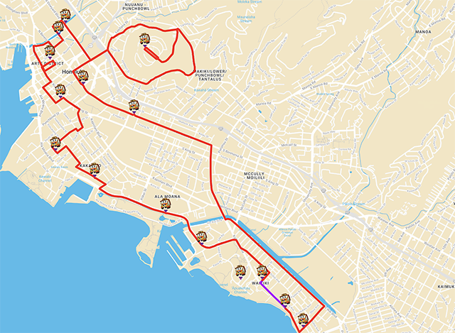 와이키키 쇼핑 플라자▶듀크 카하나모쿠 동상▶애스톤 와이키키 비치 호텔▶호놀룰루 미술관▶주의회 청사/이올라니 궁전▶펀치볼 분화구&국립 태평양 기념 묘지▶포스터 보태니컬 가든▶하와이 이즈모 타이샤 신사▶차이나타운&호놀룰루 다운타운&하와이 씨어터▶킹 카메하메하 동상▶SALT 앳 아우어 카카아코▶워드 센터&워드 빌리지▶알라모아나 쇼핑센터